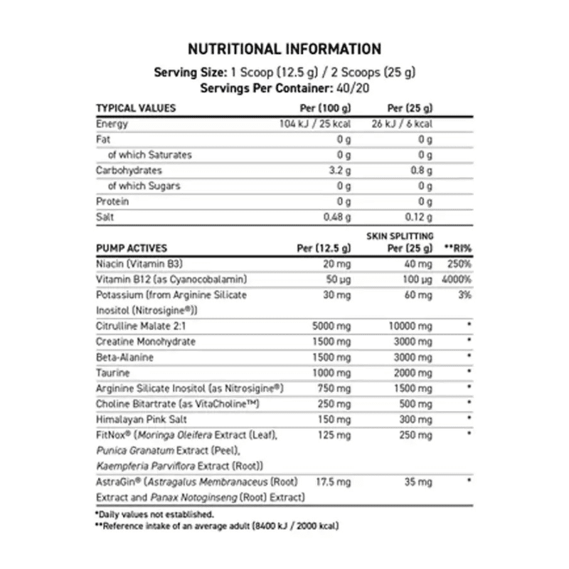 Serving Size: 1 Scoop (12.5 g) / 2 Scoops (25 g) – Servings Per Container: 20/40