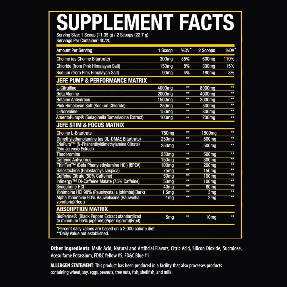 • Added performance ingredients including Choline Bitartrate and BioPerine®