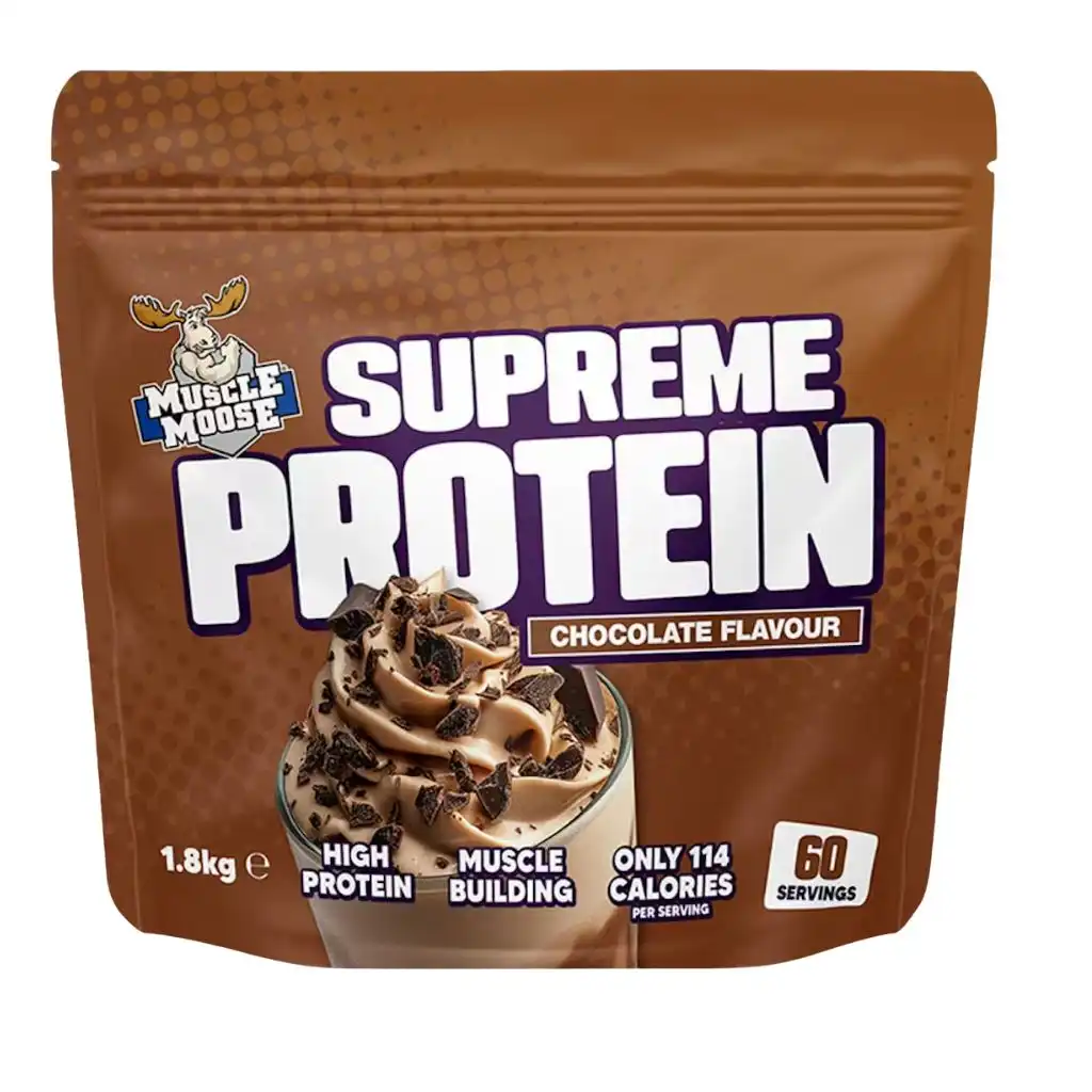 Muscle Moose Supreme Protein is a high-quality protein supplement designed to support muscle recovery, lean muscle maintenance and daily nutrition. With 19g of protein per serving, it provides a simple and effective way to increase daily protein intake, whether you’re training regularly or looking to support an active lifestyle.