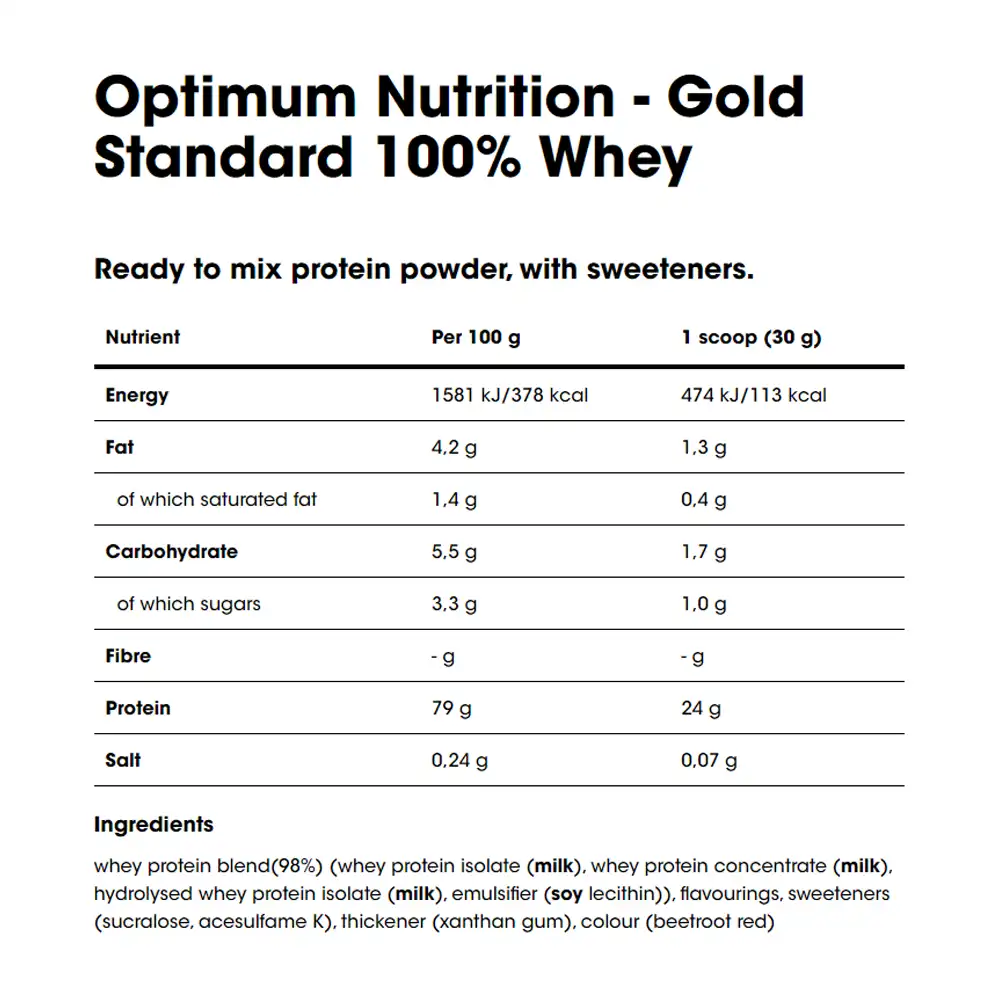Gold Standard Whey helps support muscle recovery after training, contributes to lean muscle growth and provides a reliable way to maintain consistent daily protein intake.